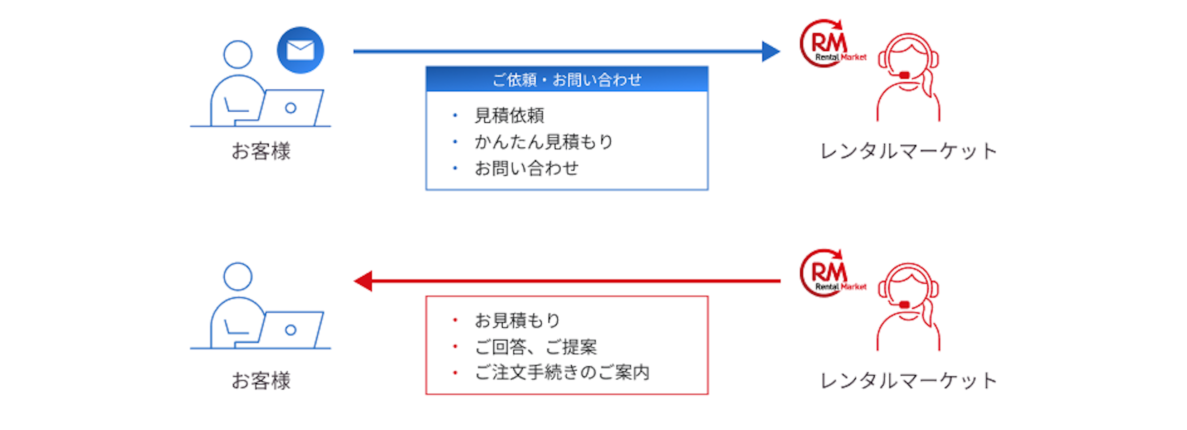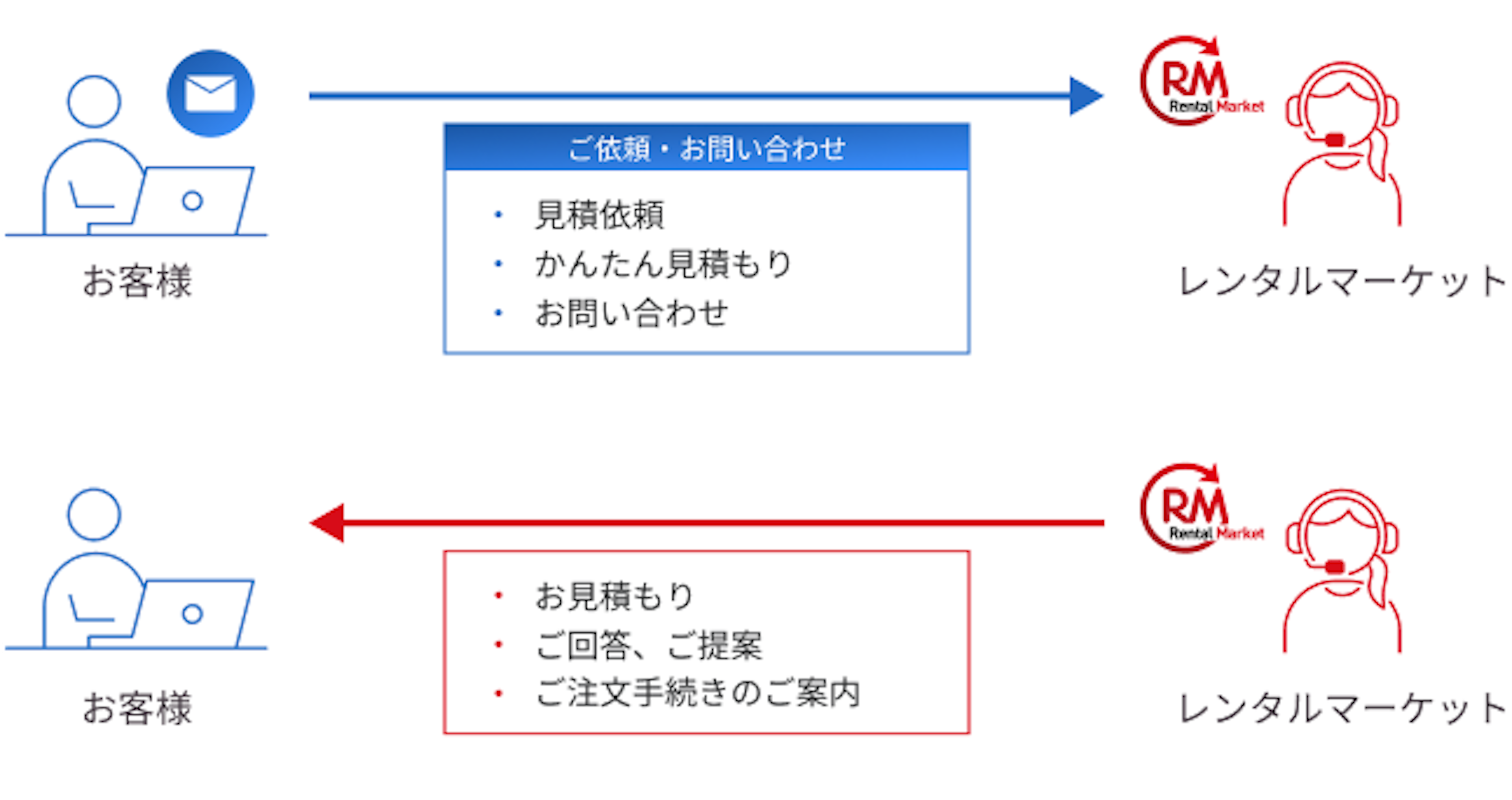 ご希望のレンタル内容について、見積依頼・お問い合わせをお願いいたします。